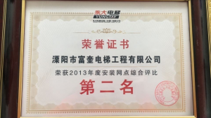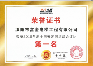 溧陽市富奎電梯工程有限公司 溧陽市富奎電梯工程有限公司是于二OO八年一月九日在原前身溧陽市電梯工程公司基礎(chǔ)上成立的,是專業(yè)從事電梯銷售安裝維修、保養(yǎng)的企業(yè)。是國家質(zhì)監(jiān)總局頒發(fā)的特種設(shè)備安裝、改造、維修A級安裝許可證單位。公司組織機(jī)構(gòu)實(shí)行總經(jīng)理負(fù)責(zé)制,公司下設(shè)管理部、銷售部、安裝維修部、質(zhì)安部、財務(wù)部,公司另外設(shè)十二個分公司:四川分公司、江蘇分公司、上海分公司、浙江分公司、湖南分公司、遼寧分公司、山東分...